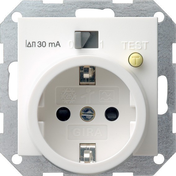 Розетка Gira SYSTEM 55, скрытый монтаж, с заземлением, белый глянцевый, 047703